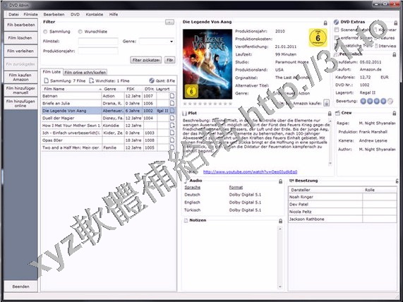 informations such as genre, FSK (Voluntary Self-Monitoring), actors,