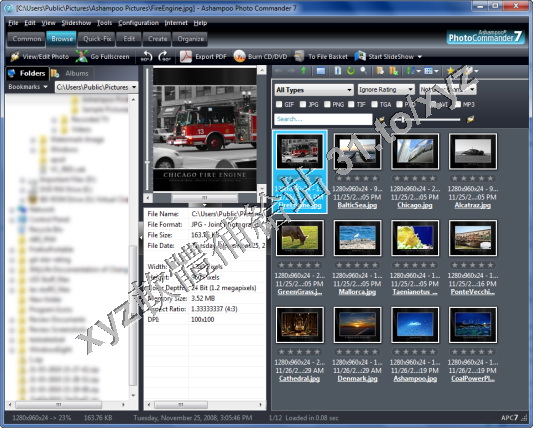 歸檔圖片及數位照片的工具,及常見的音頻、視頻格式。界面美觀,支援面板更換,對