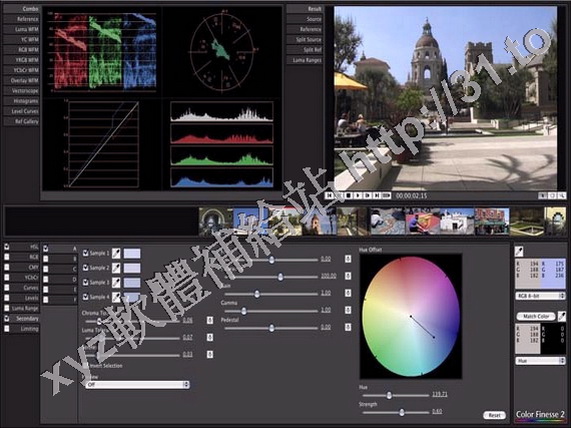 和YCbCr 色彩空間對顏色進行校正。可以調節圖像的色階,曲線,並可以在示波器中預覽。
