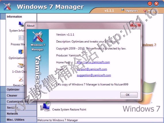 • Yamicsoft Windows 7 Manager v2.0.2 英文正式版(優化和設置 Windows7 工具軟體)